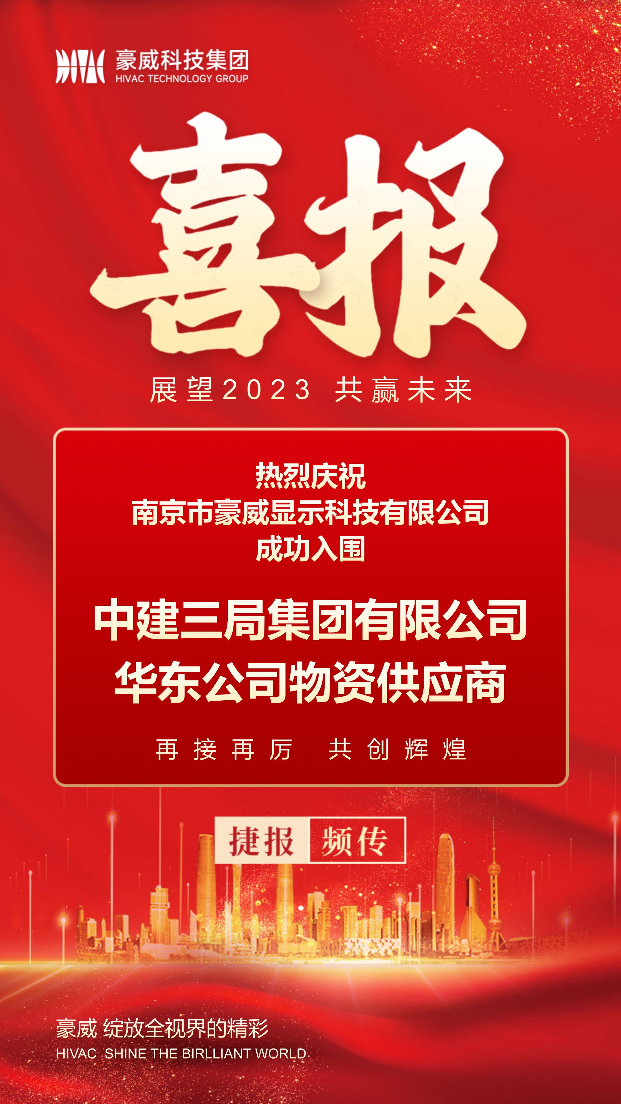 南京市太阳成集团tyc33455ccwww显示科技有限公司积极参与中建三局集团有限公司华东公司平台认证工作,经过多方努力,快速入选其物资供应商。此次合作增强了公司综合竞争力,也为持续开拓项目积累了宝贵经验。
